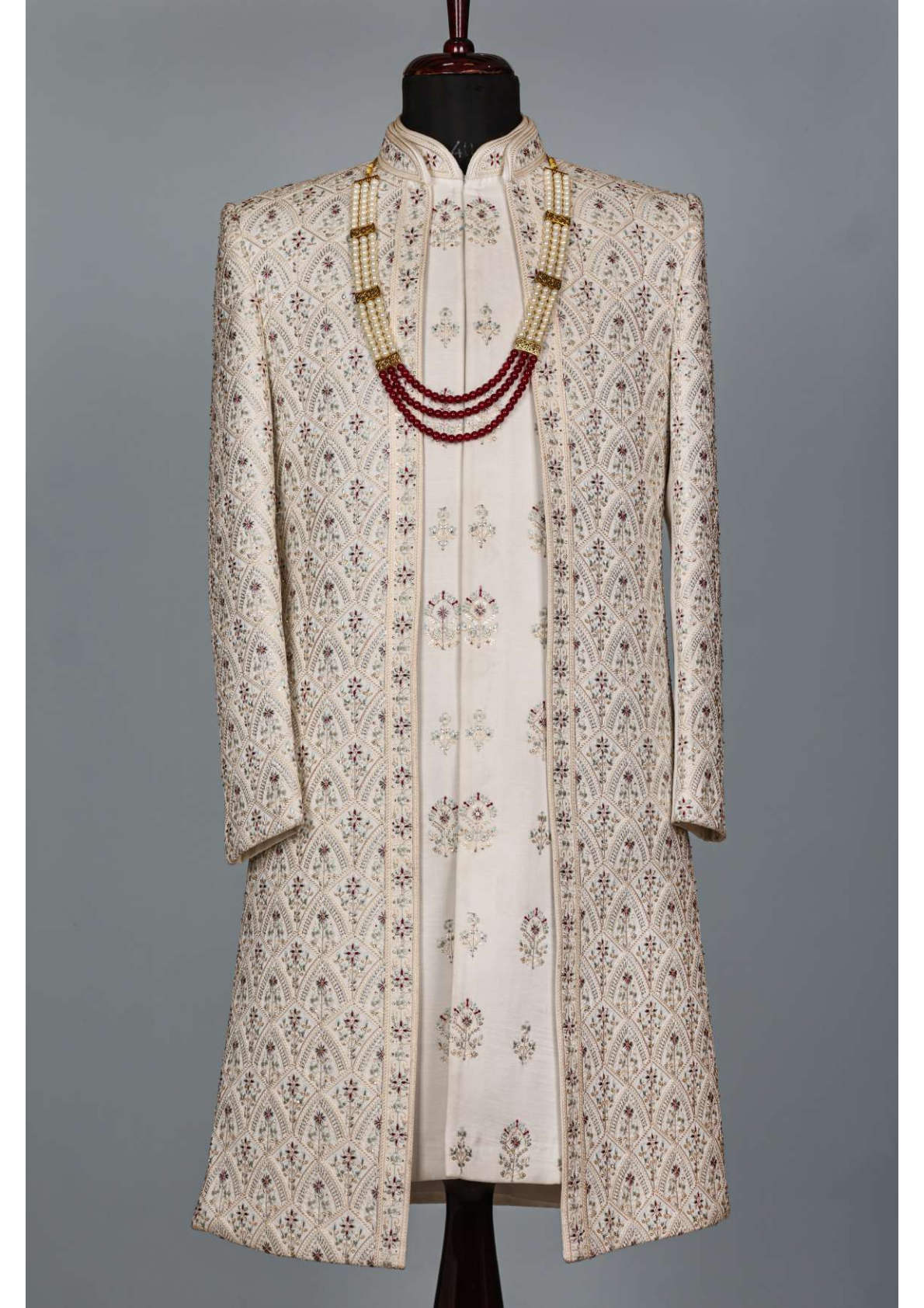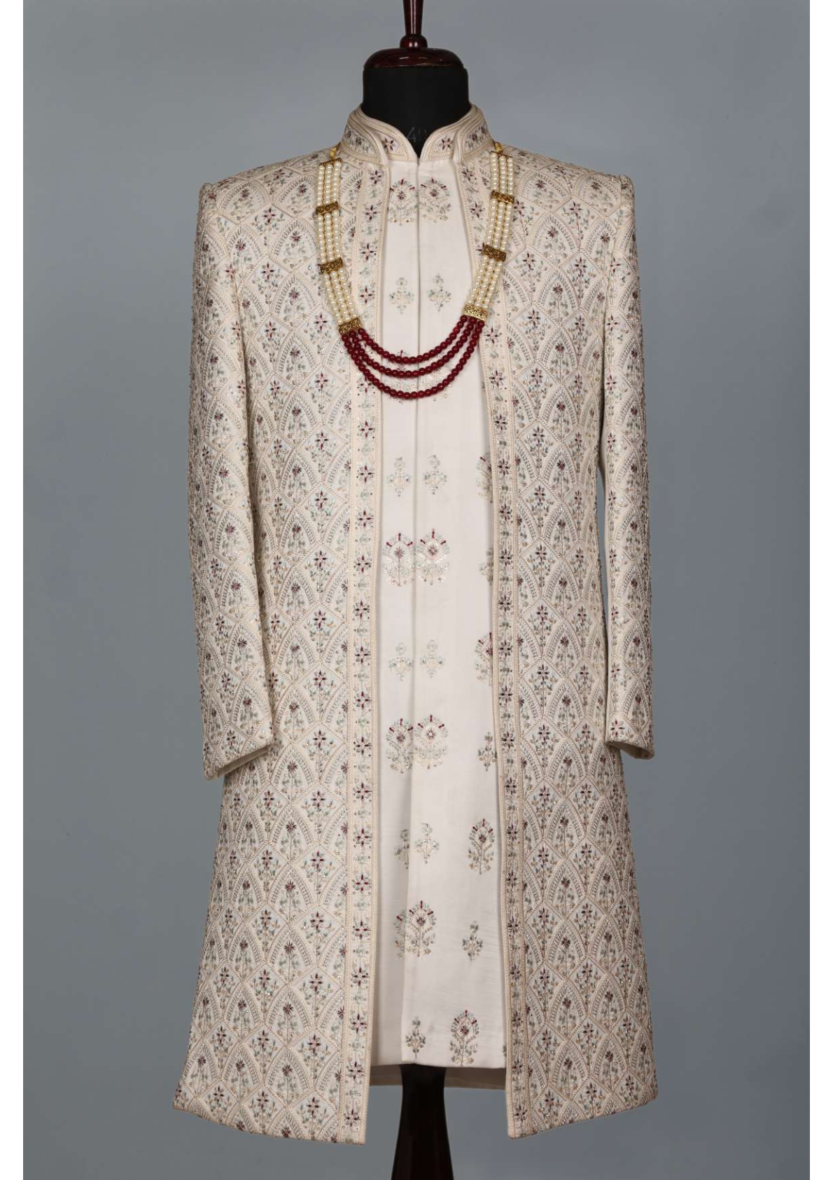 - Ivory embroidered indo western jacket